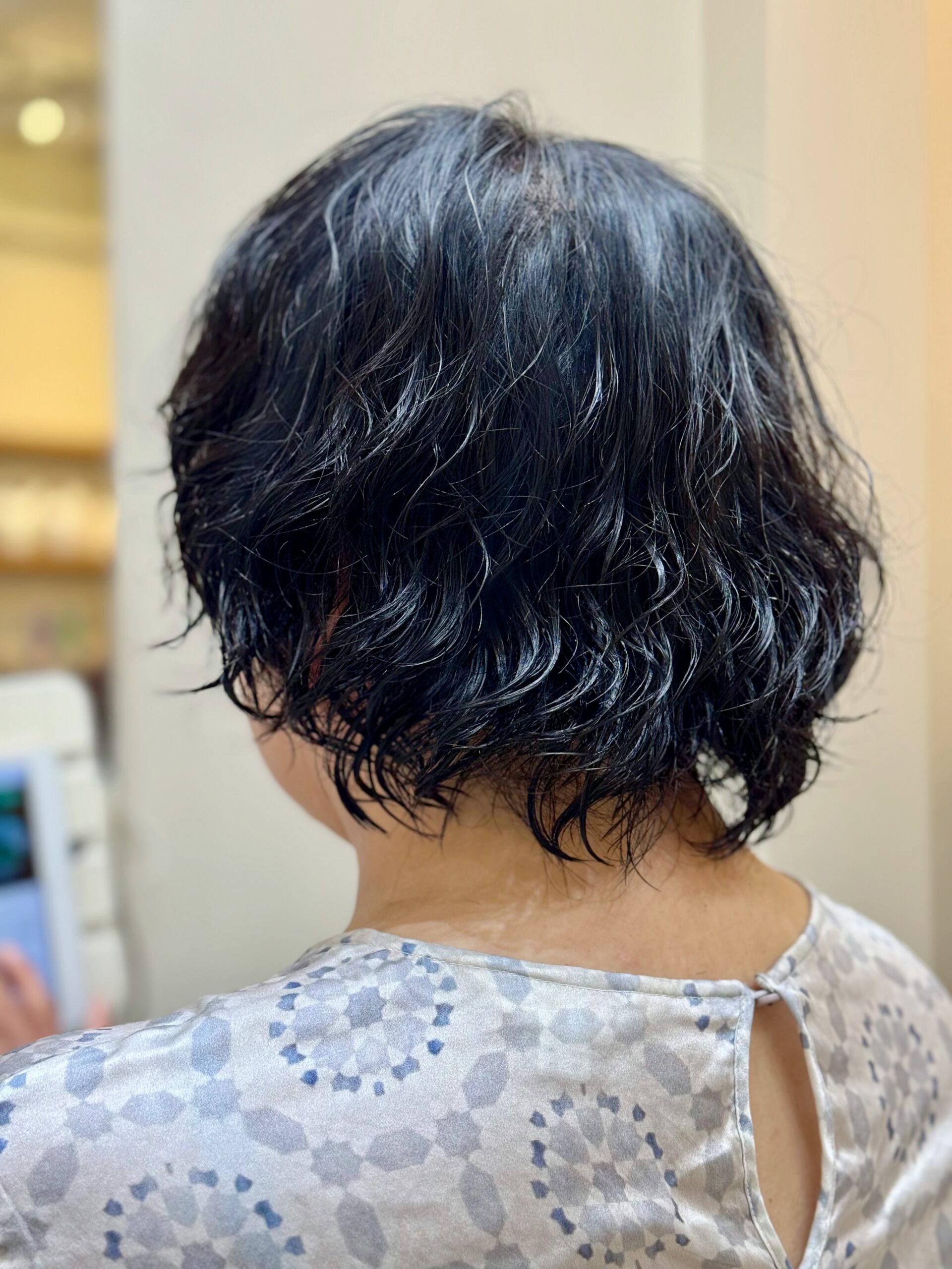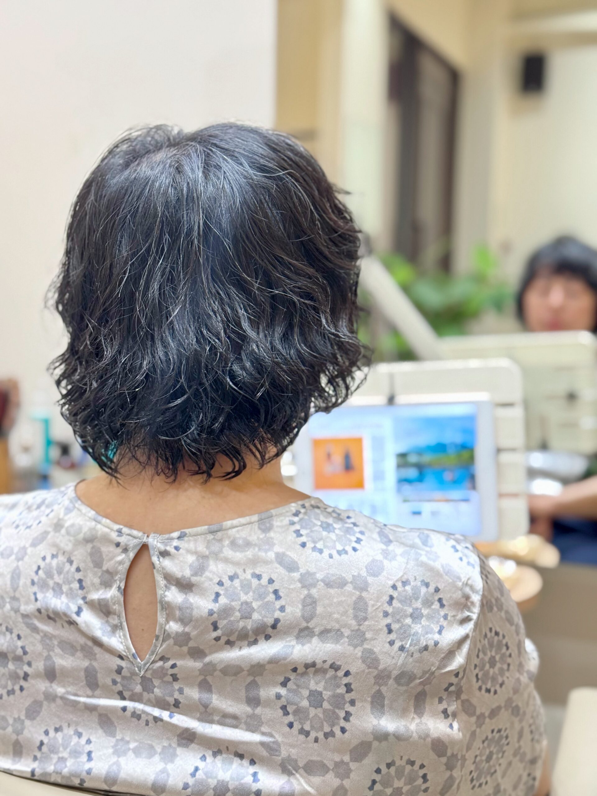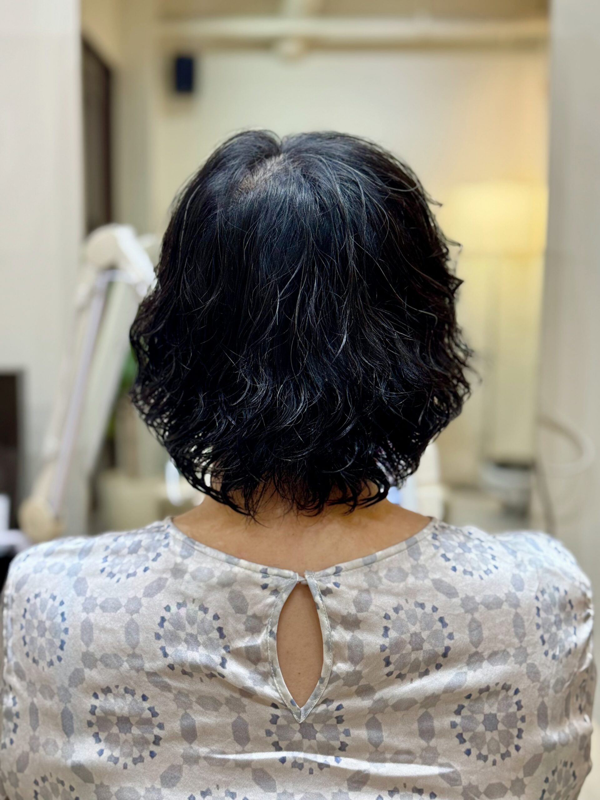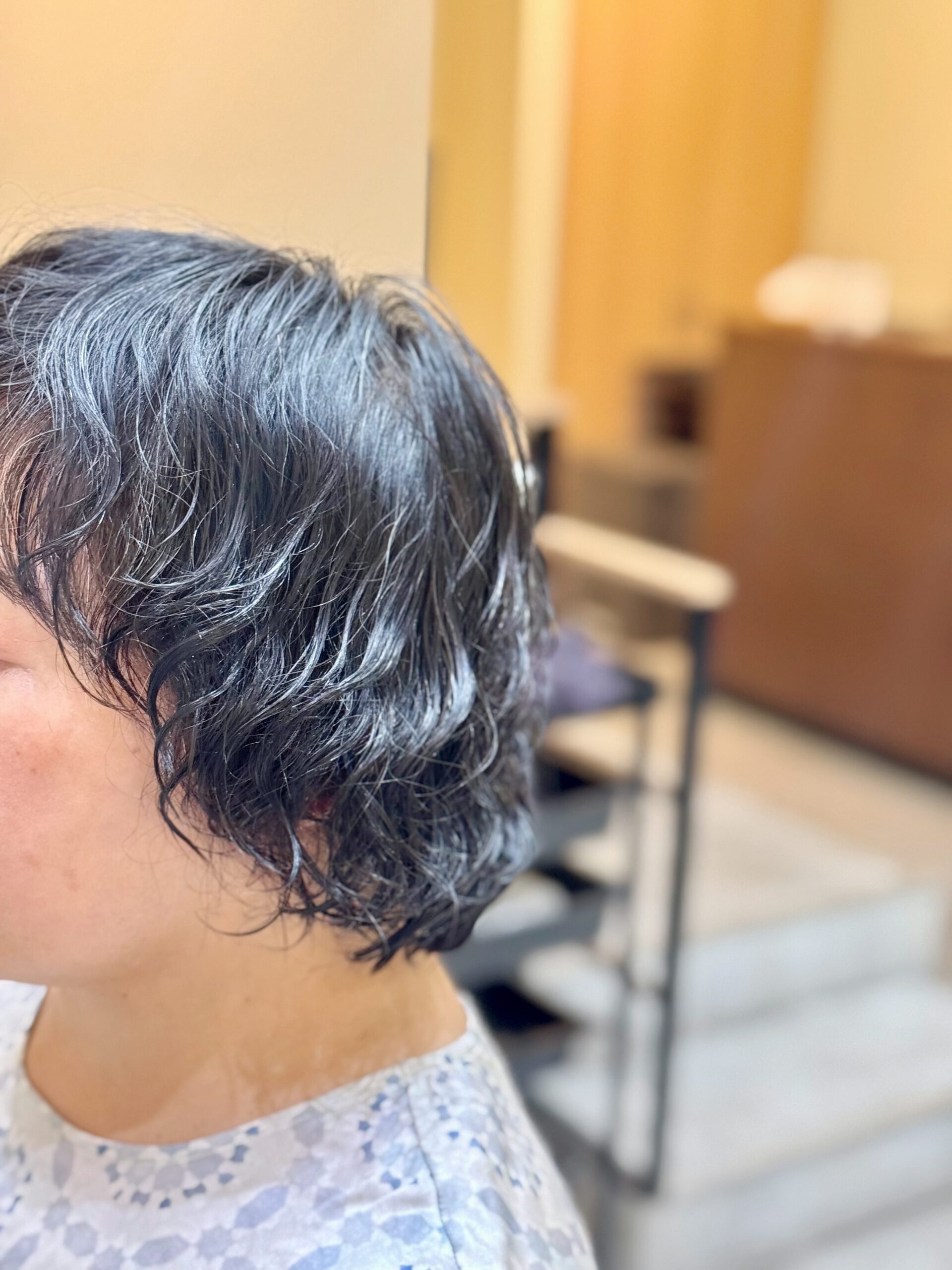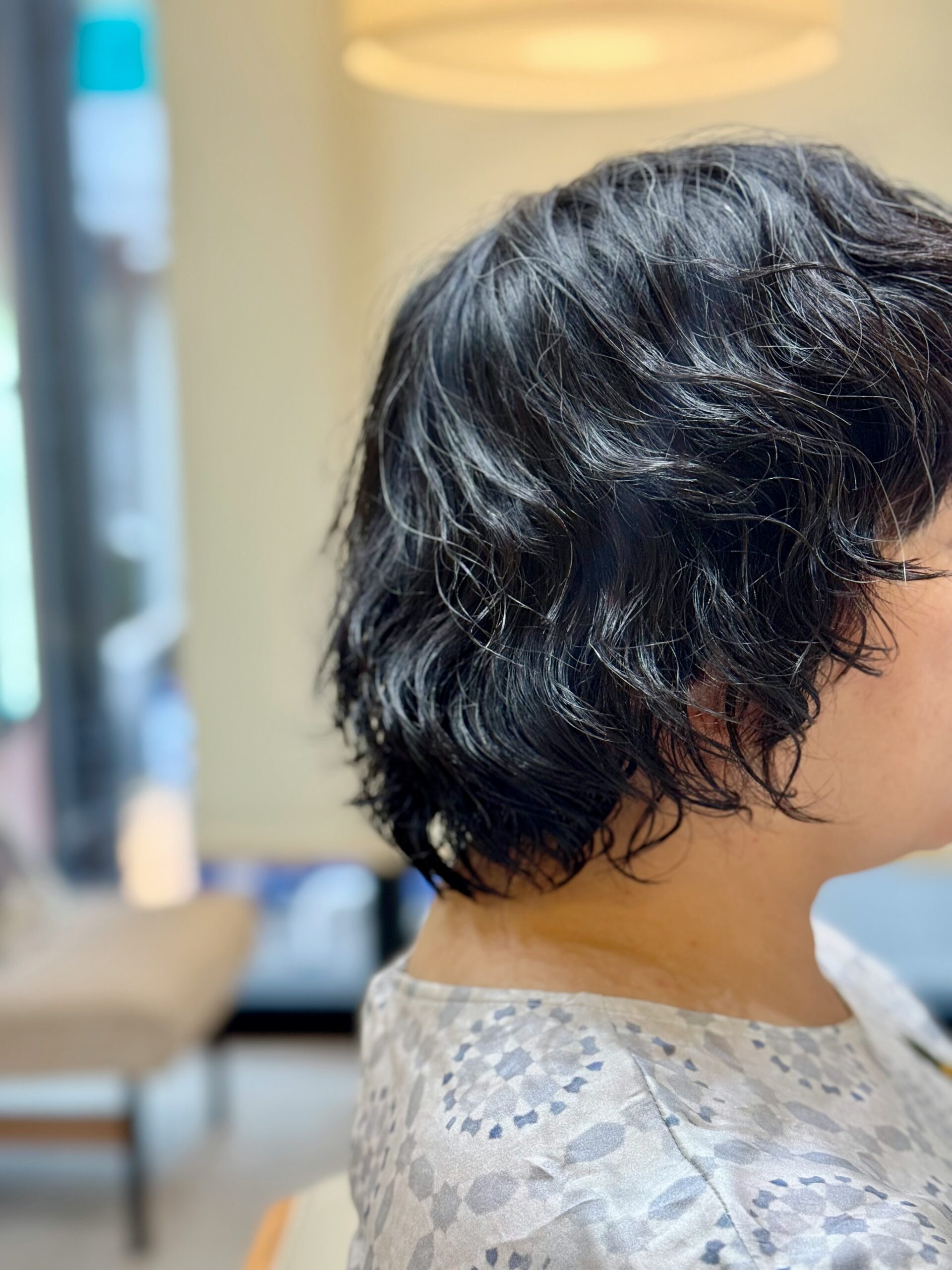 オーダーを伺うと バッサリと短く切ってパーマスタイルがご希望だった