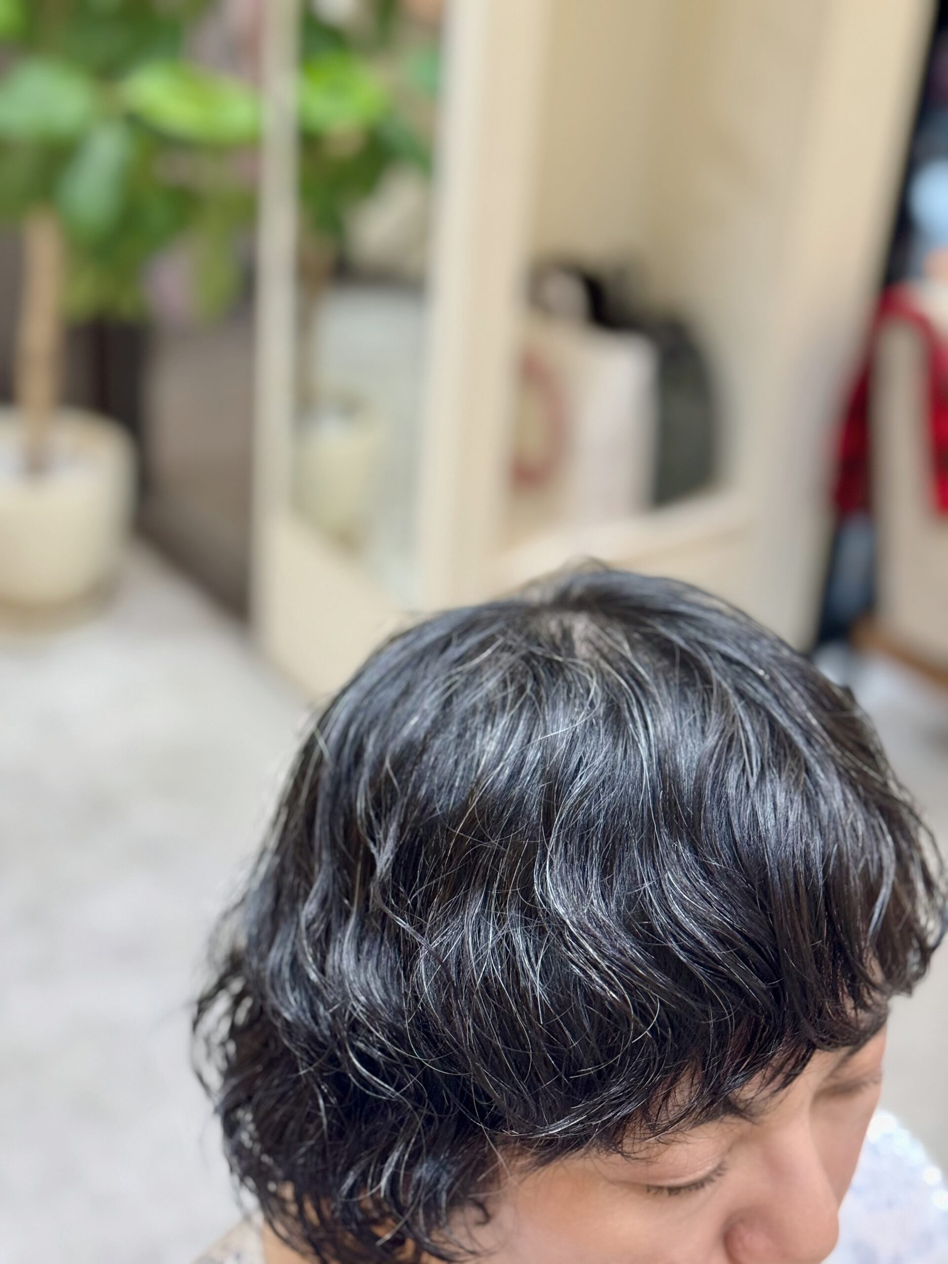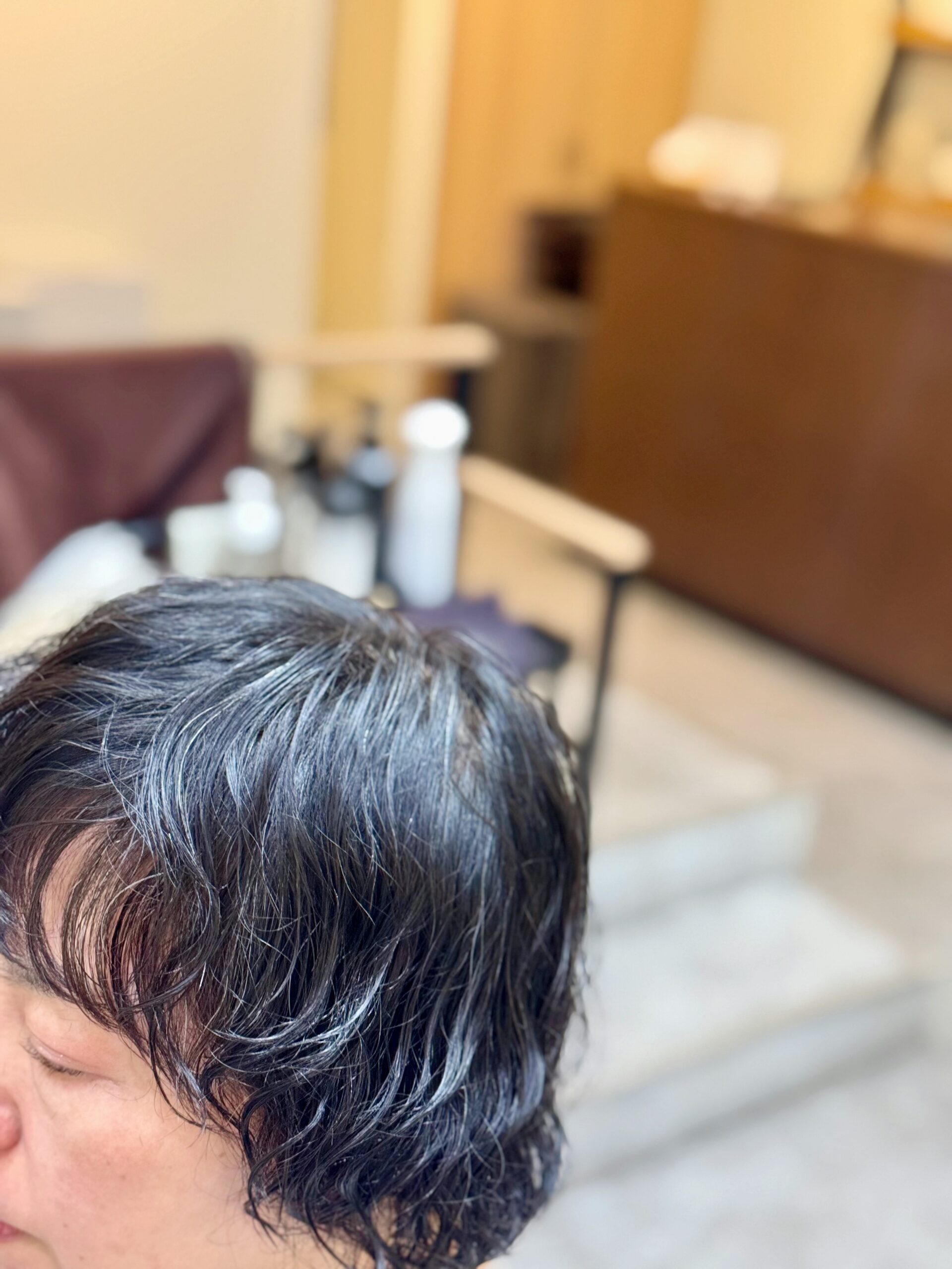 そして旅先でもお手入れが簡単で型崩れしないようにを考慮してウエーブヘアのパーマを当てさせてもらった