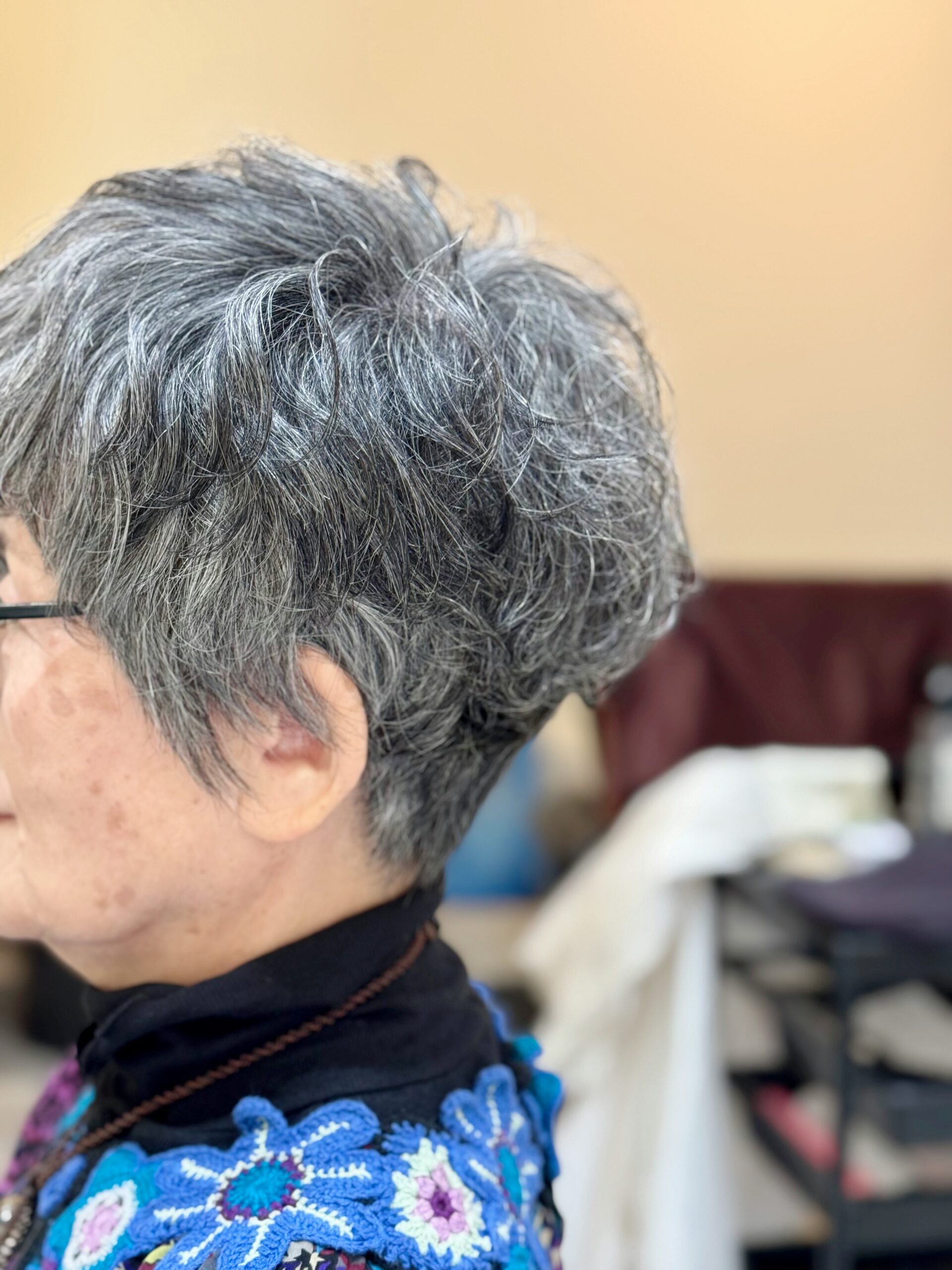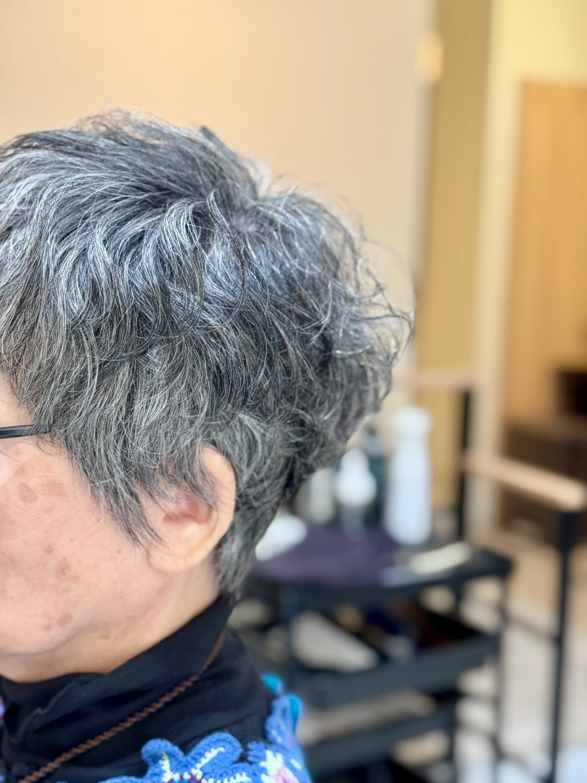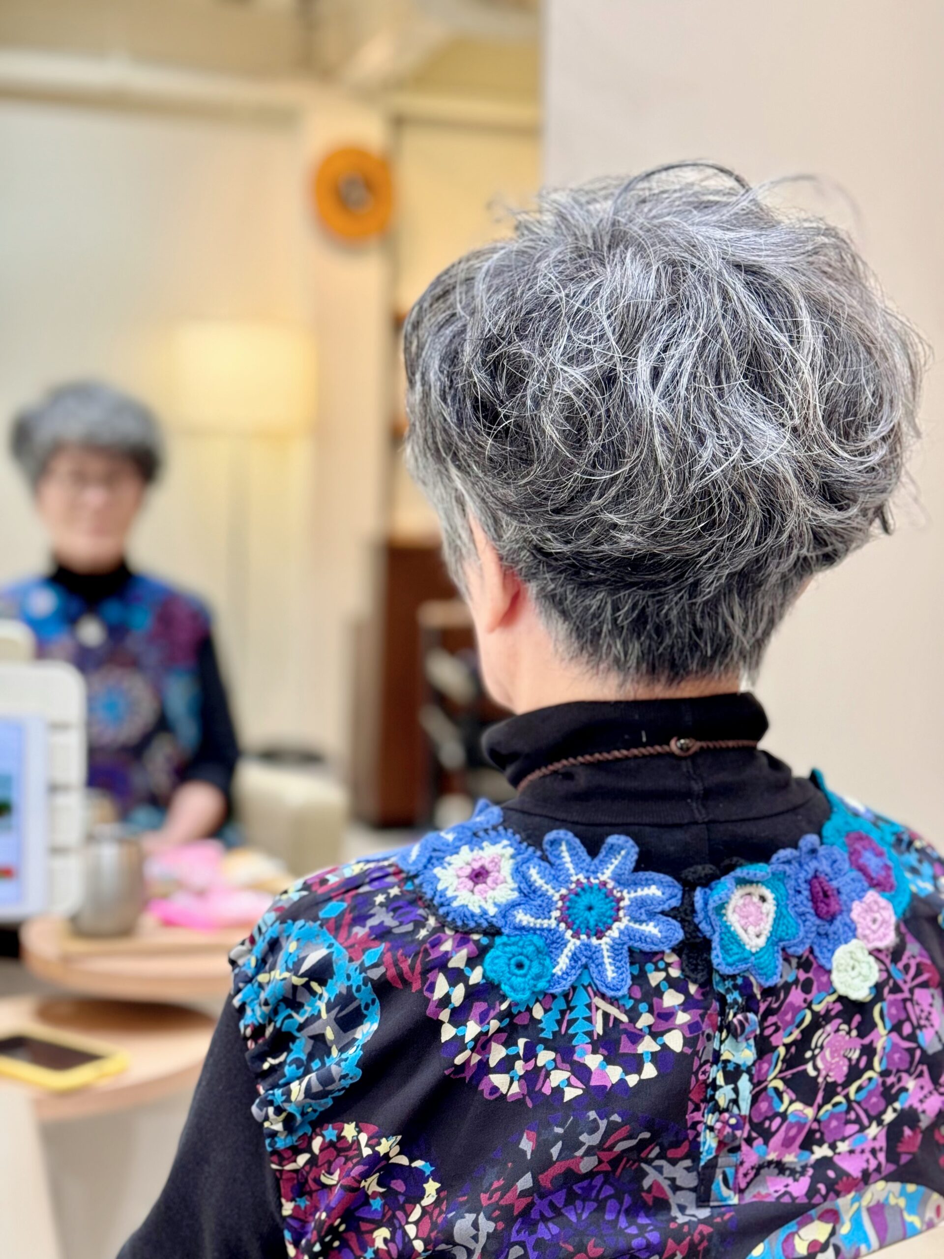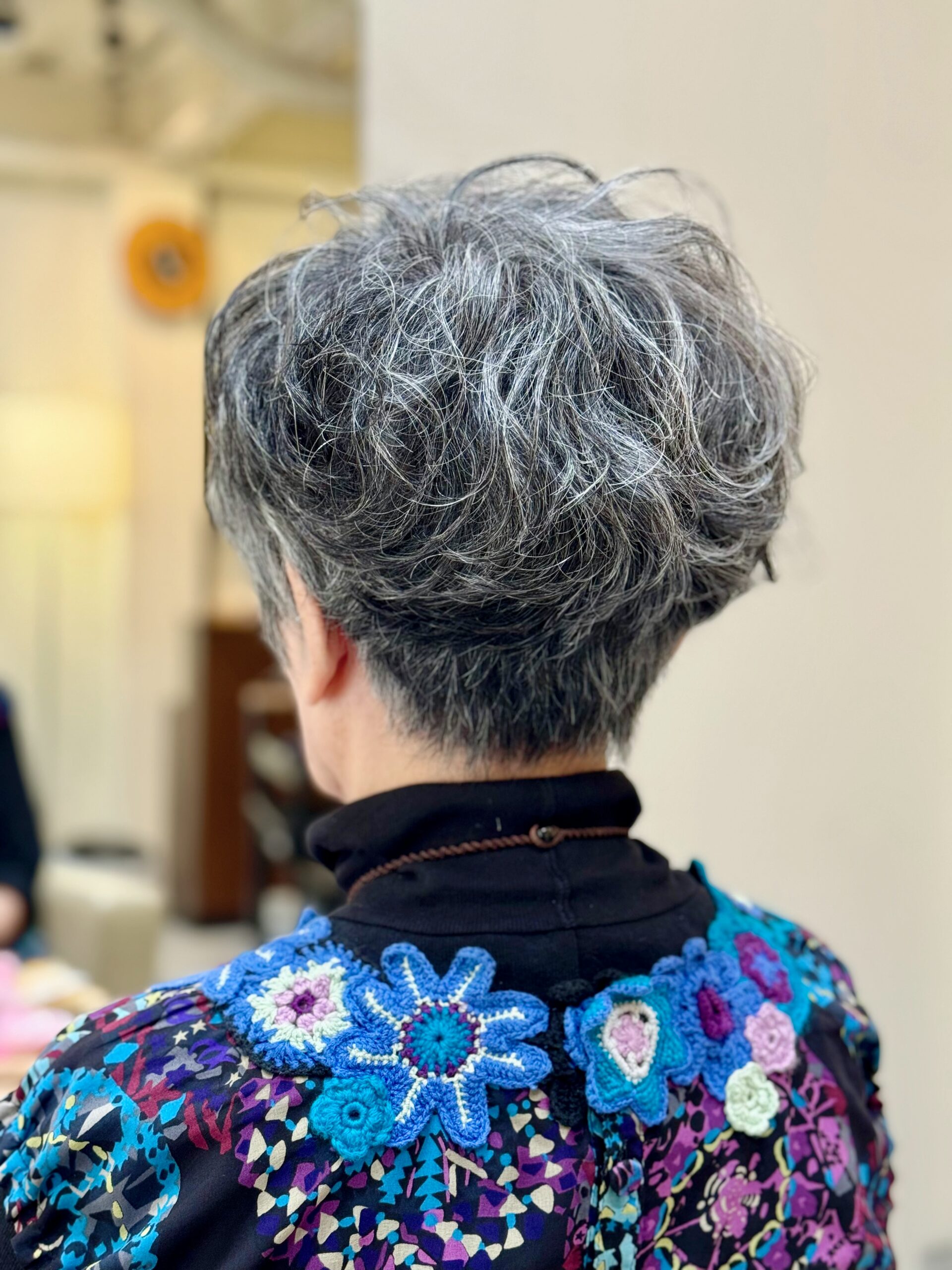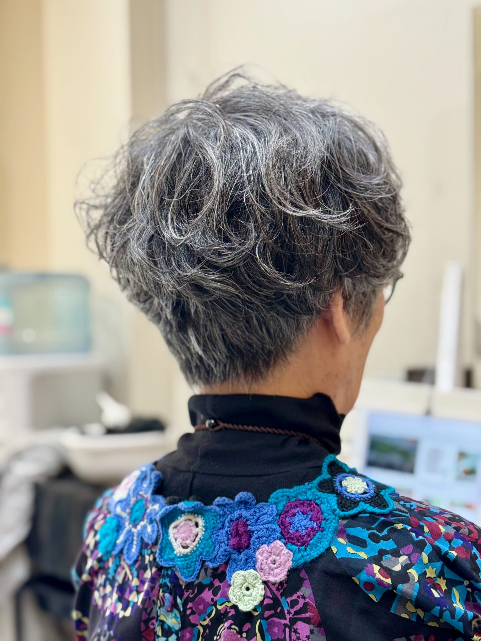 元々 癖毛さんでもあるタエコさんなんだけど 癖毛って欲しい所には癖がなく 要らない所に癖が出たりしがちだから それも見越して綺麗にカールが出るようにイメージしつつパーマを当てさせてもらう