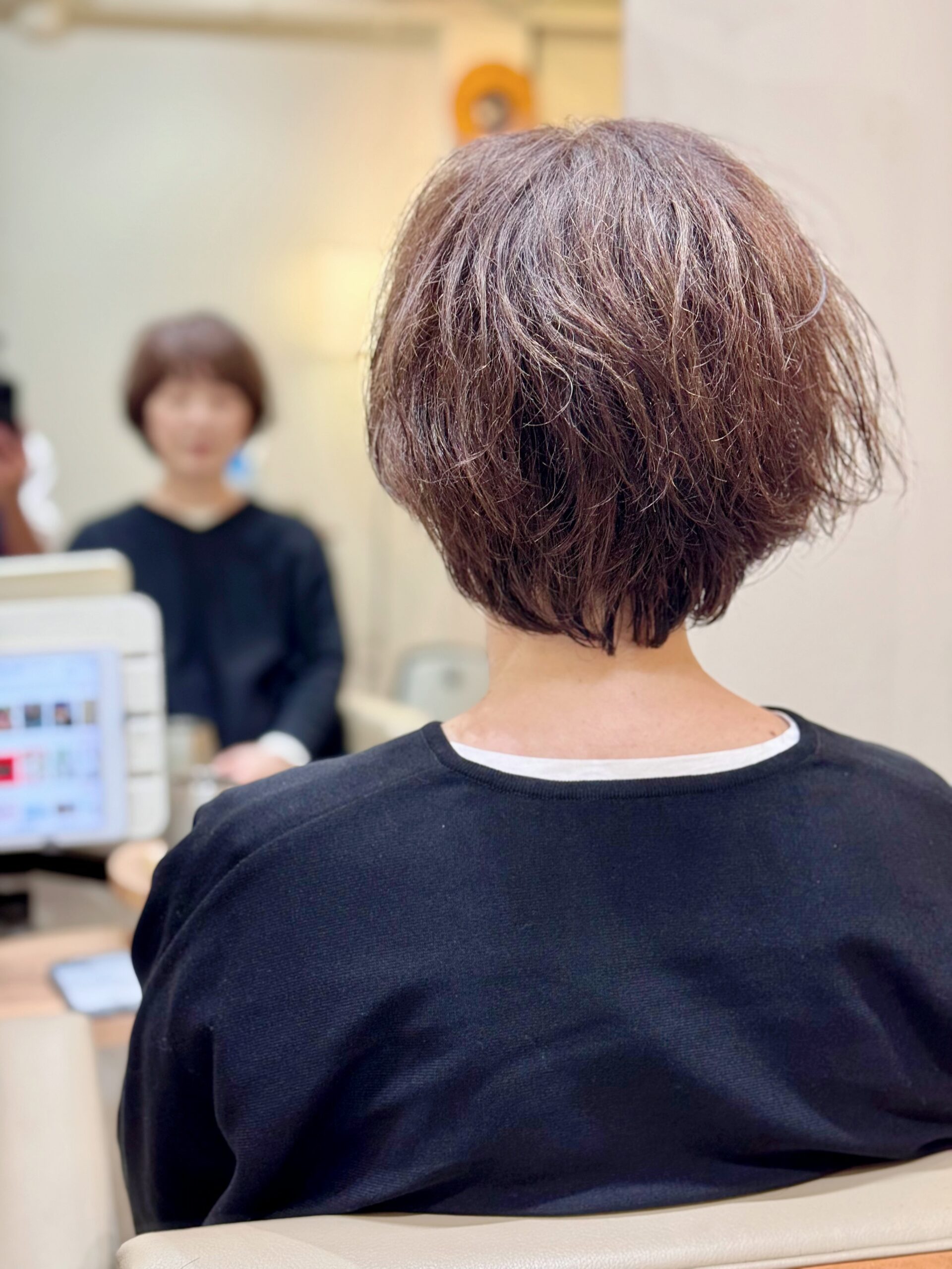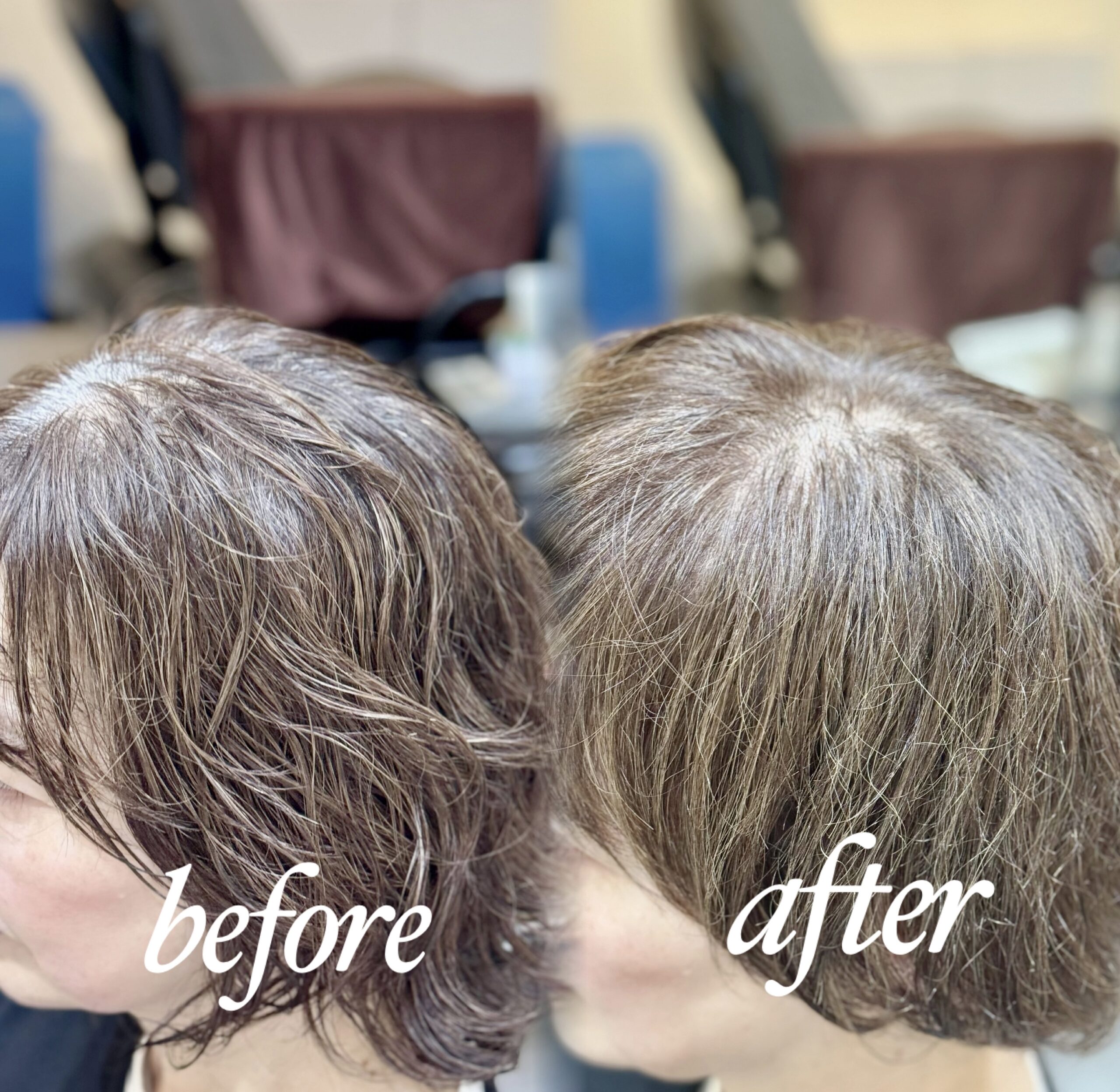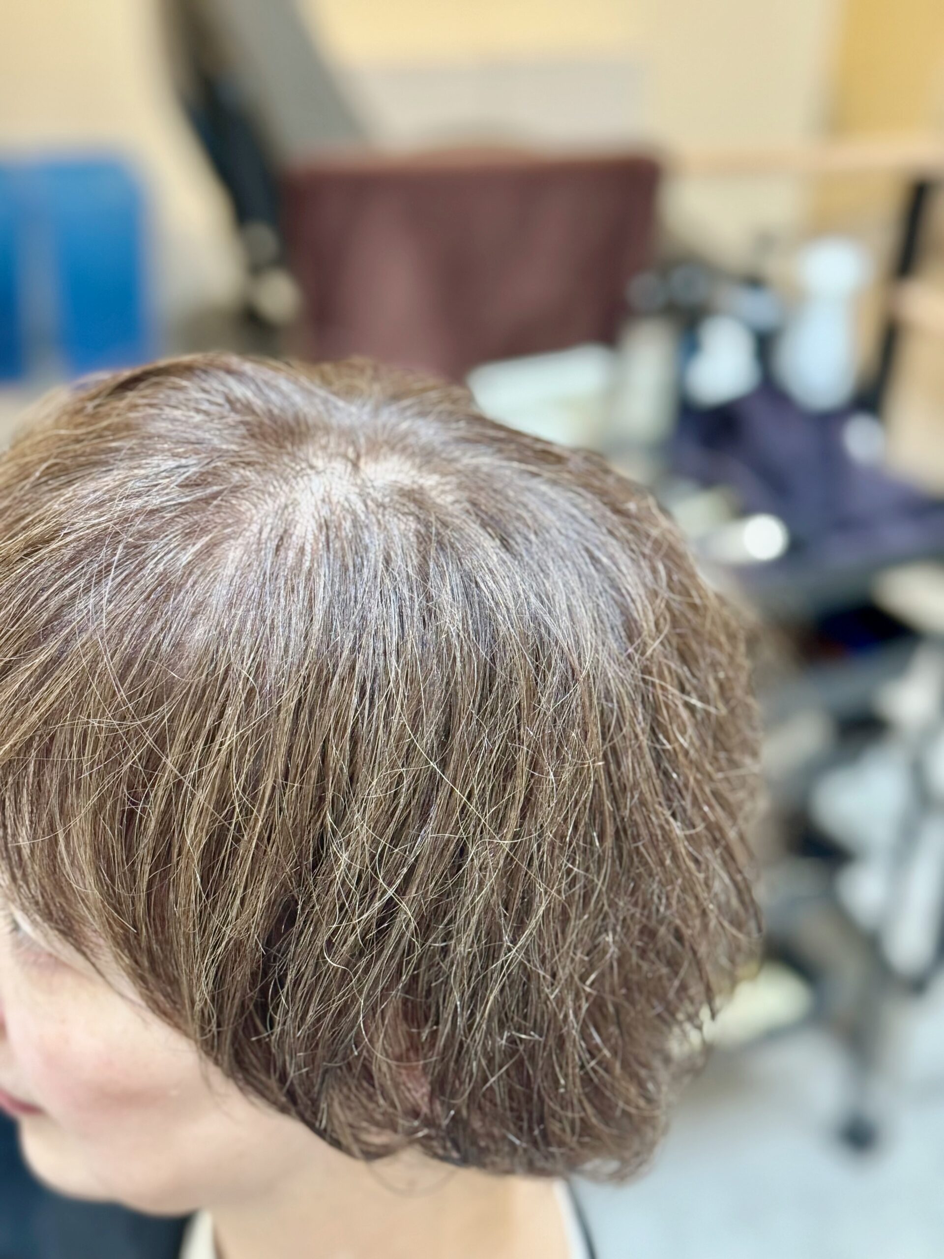 そして大人女子あるあるな白髪問題も解消させてもらうんだけど 今よりかは透明感を出した方が柔らかく映るしボリュームを出してもエアリー感として見えるのでオススメさせてもらった