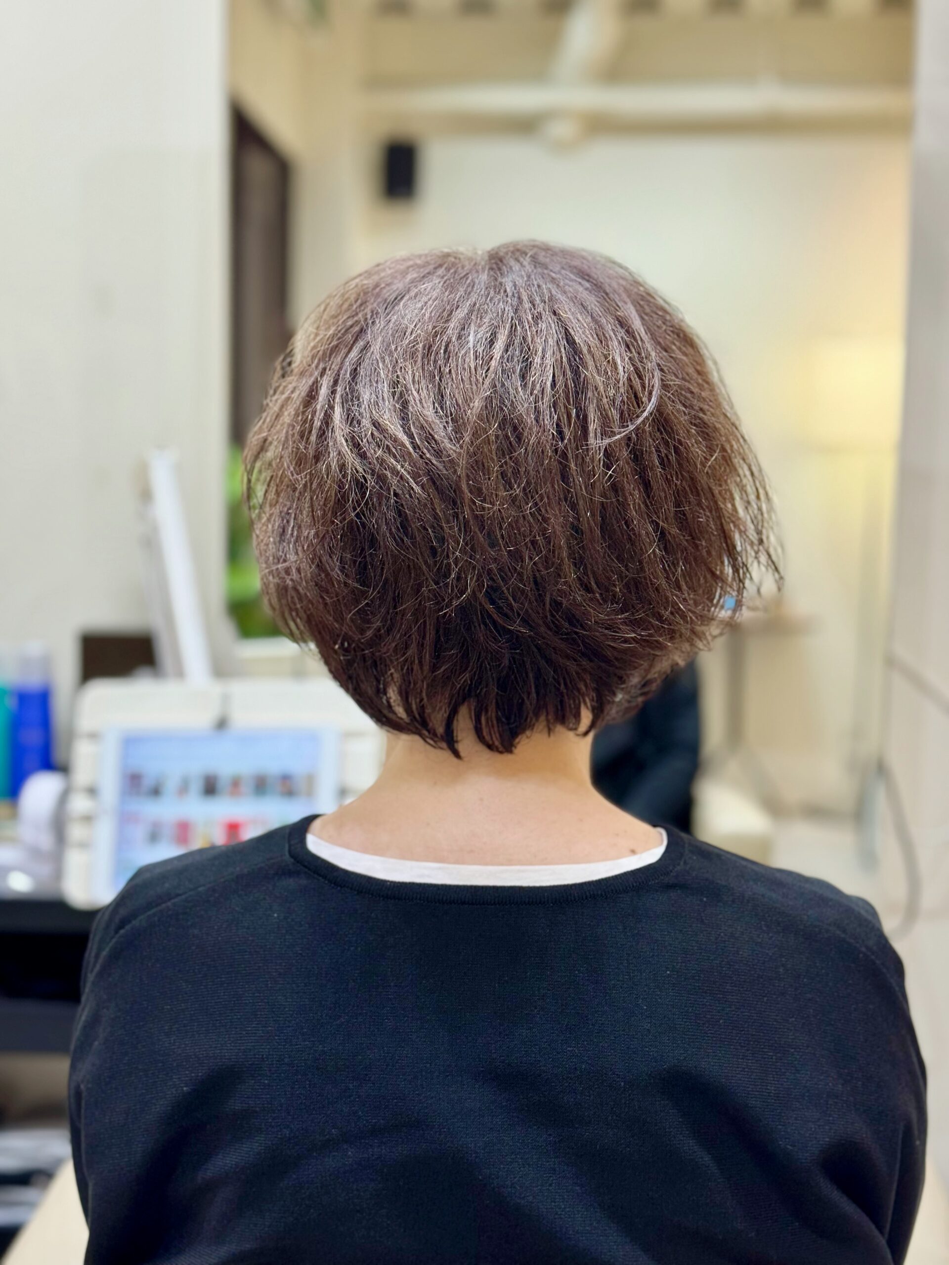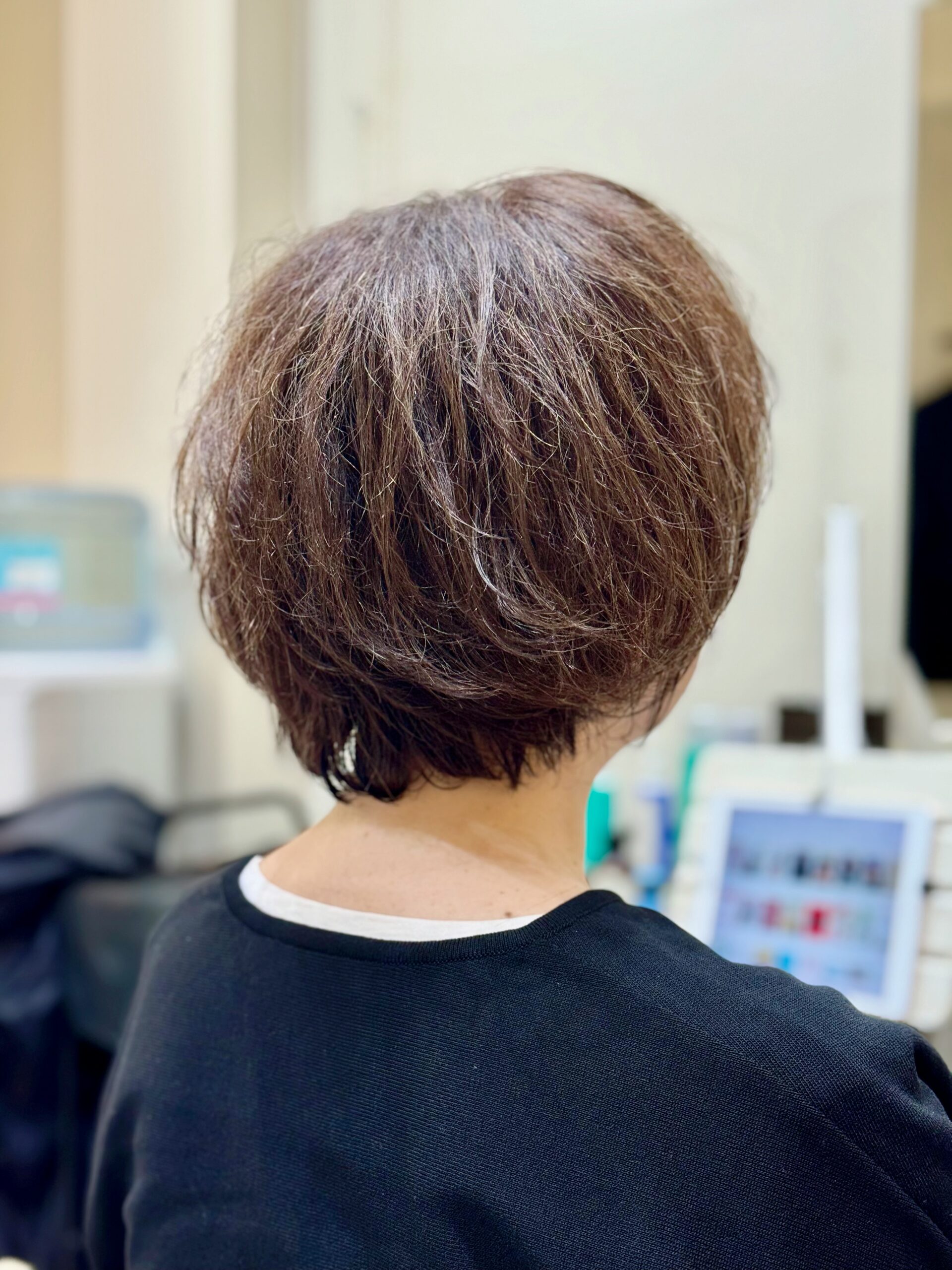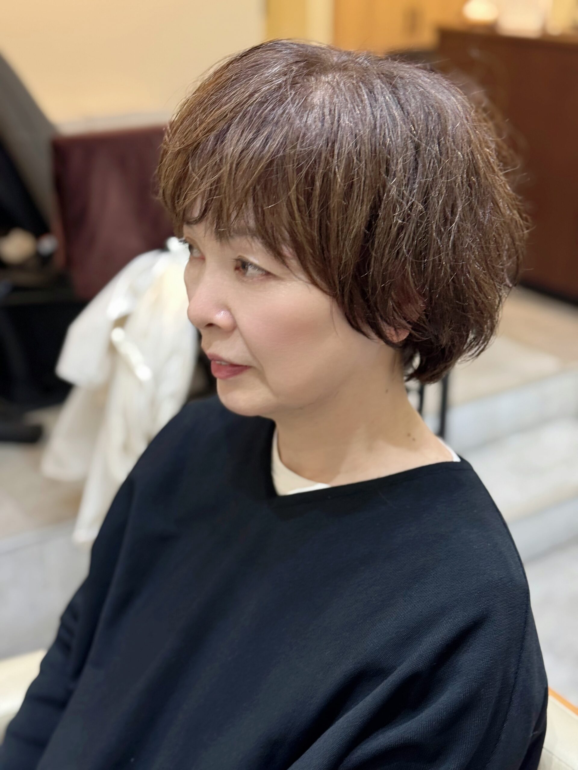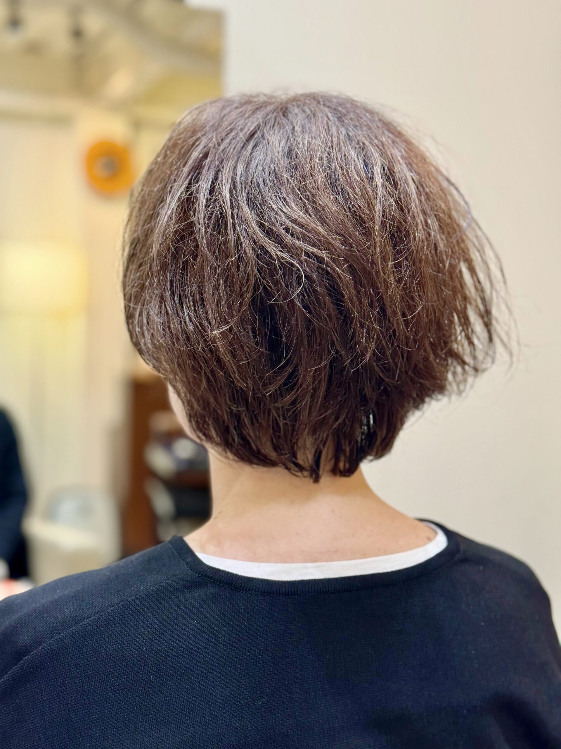 そして大人女子あるあるな白髪問題も解消させてもらうんだけど 今よりかは透明感を出した方が柔らかく映るしボリュームを出してもエアリー感として見えるのでオススメさせてもらった