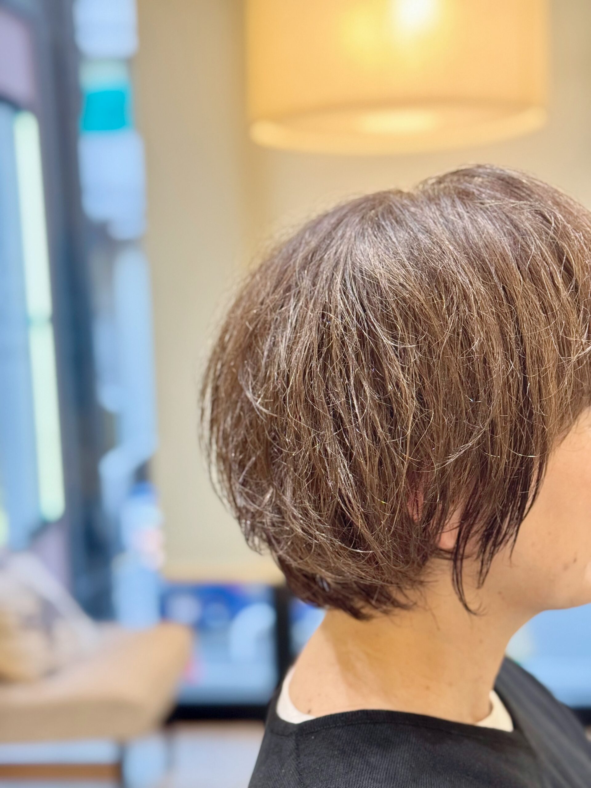 癖毛さんで膨らむ髪質なのがお悩みだったんだけれど オイラからしたら短い方が絶対可愛いと思い提案させてもらったら快く快諾してくれた