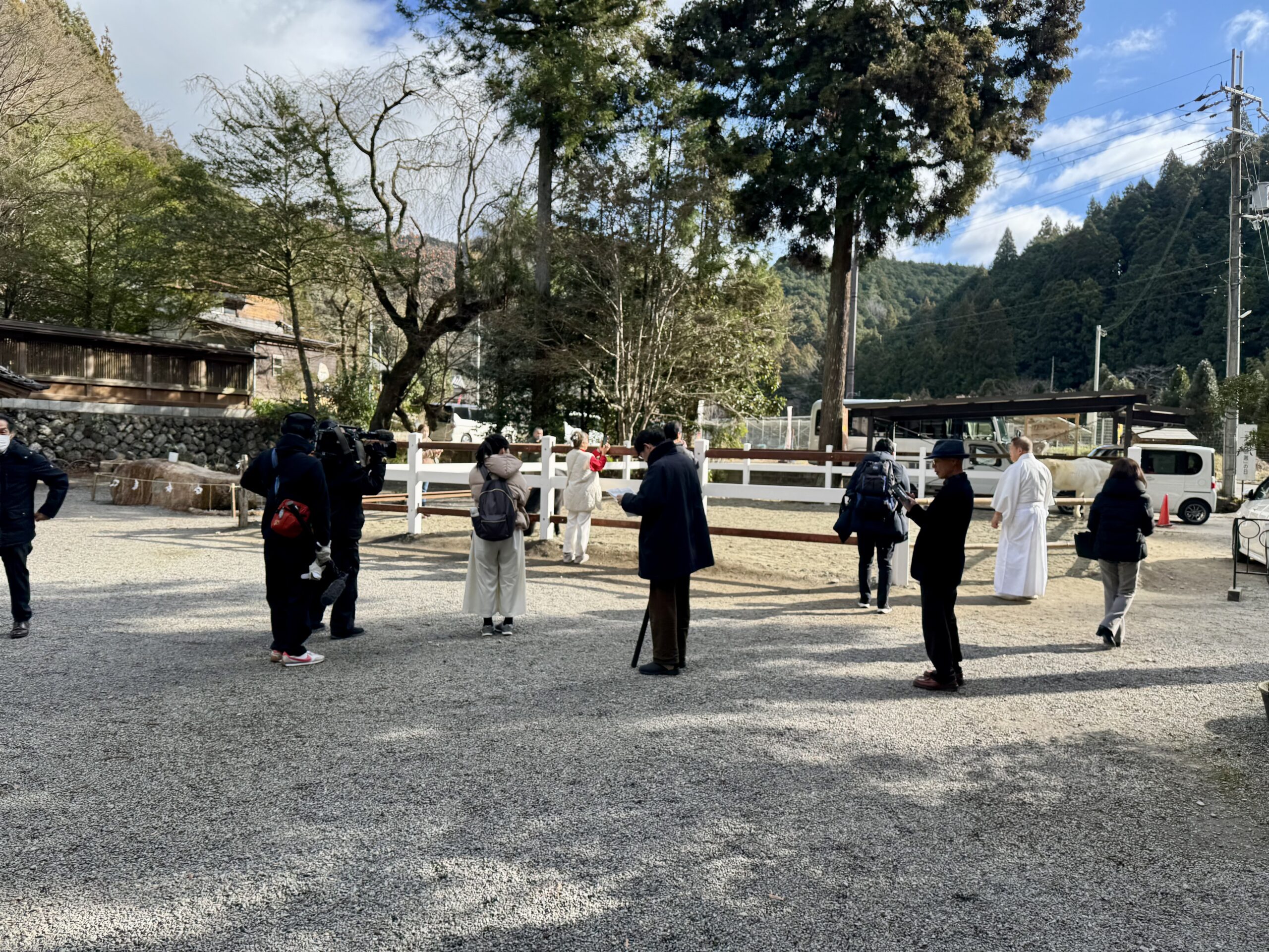 おっと何やら撮影が行われていて神主さんがインタビューされてます〜 (^^♪